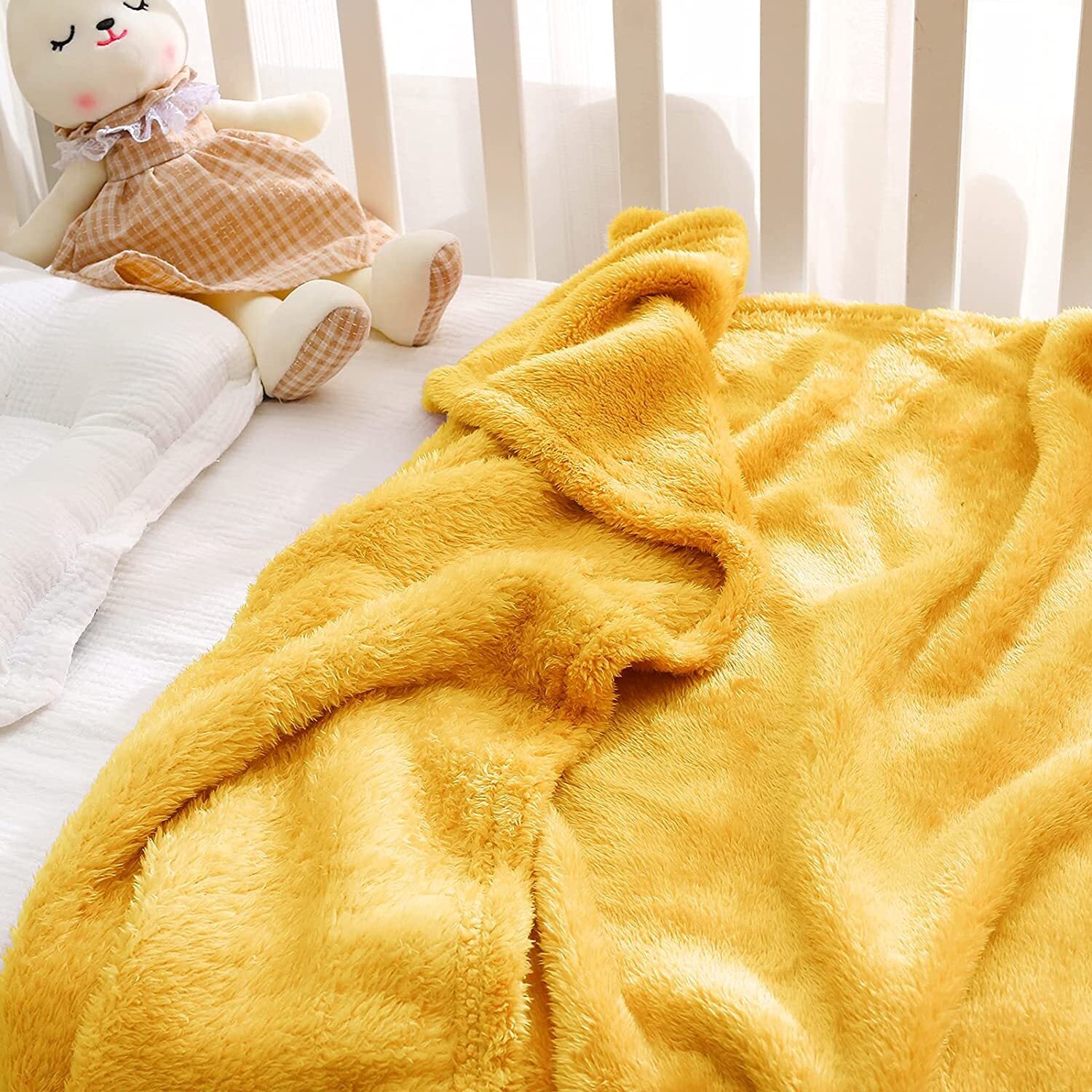 Exclusivo Mezcla Plush Baby Blanket, Soft and Warm Swaddle Throw Blanket, Infant, Newborn, Toddler and Kids Receiving Fleece Blankets for Crib Stroller (40x50 inches, Mustard Yellow)