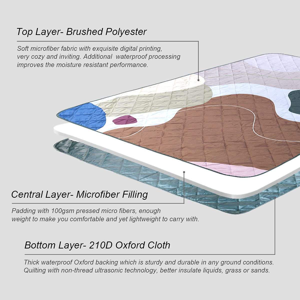 Exclusivo Mezcla Waterproof Picnic Blankets 3-Layer 60x80 Inches Large Sandproof Beach Blanket Foldable Outdoor Blanket for Camping on Grass Picnic Mat, Abstract Tan