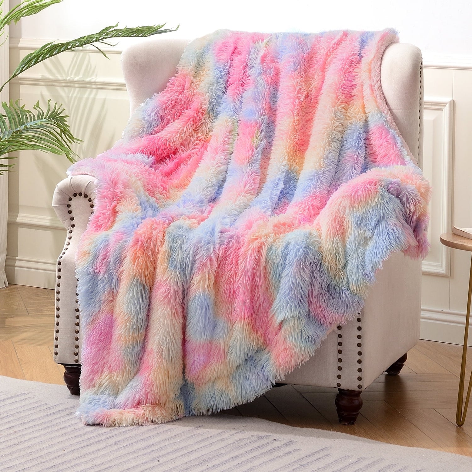 Exclusivo Mezcla Super Soft Fuzzy Faux Fur Throw Blanket, Fluffy Plush Cozy Reversible Shaggy Sherpa Fleece Blankets and Warm Throws for Couch Sofa Bed, 50x60 inches, Rainbow