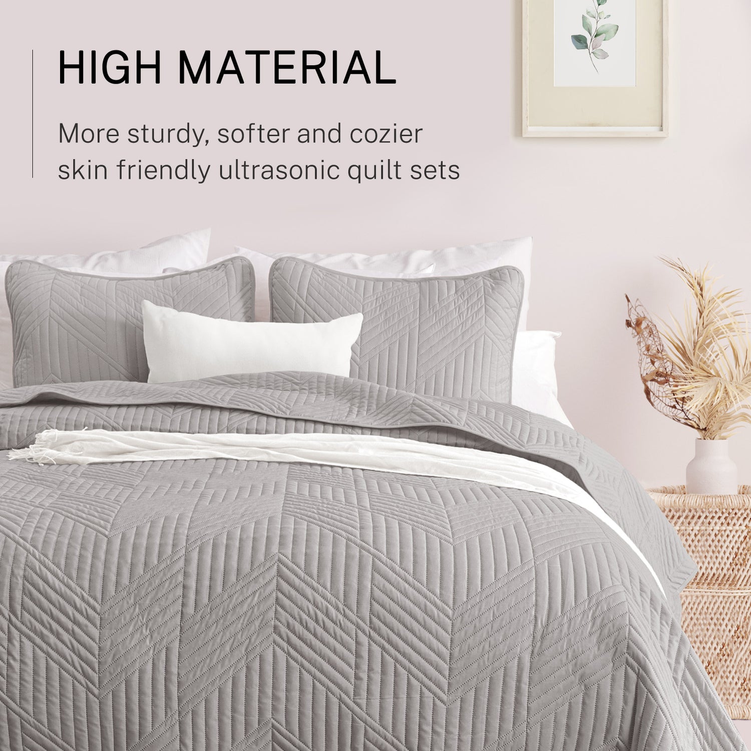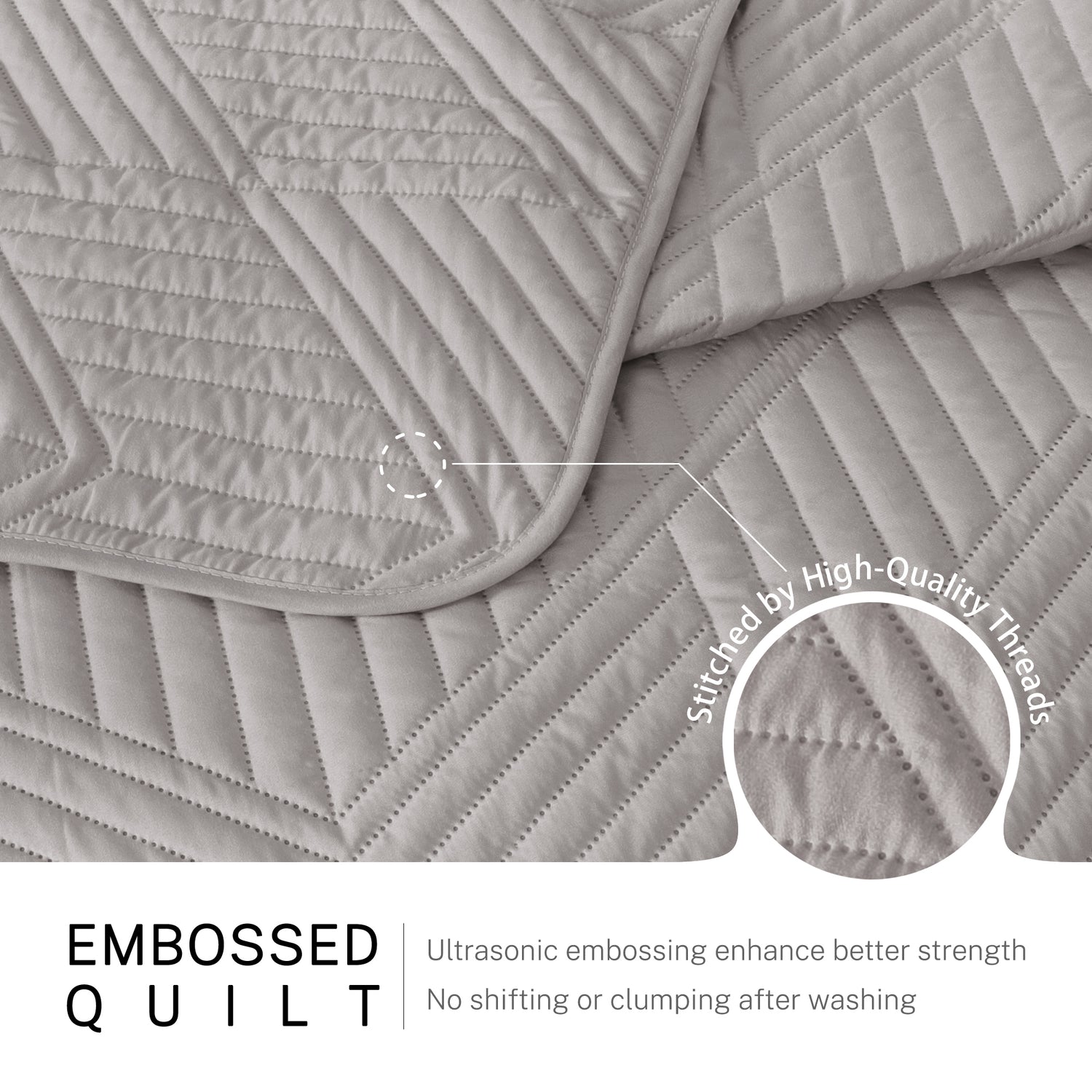 Exclusivo Mezcla California King Quilt Bedding Set, Lightweight Light Grey Oversized King Bedspreads Soft Modern Geometric Coverlet Set for All Seasons (1 Quilt and 2 Pillow Shams)