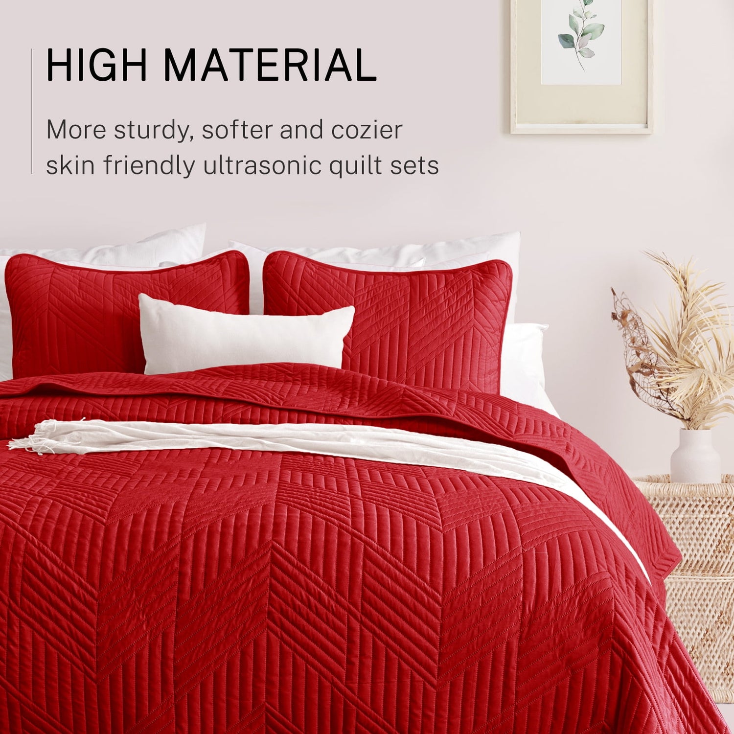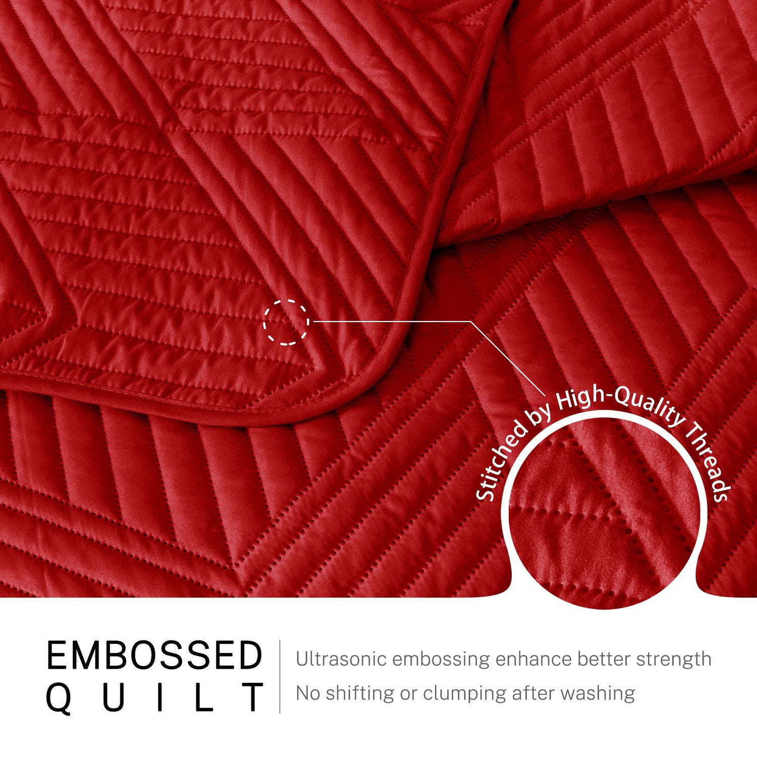 With ultrasonic quilting technology and high-tech dyeing process, this soft quilt set is machine washable. This lightweight and breathable quilt bedding set is suitable for all seasons. It could be used as a soft quilt, bedspread, coverlet or bed cover in bedroom, living room or guestroom.