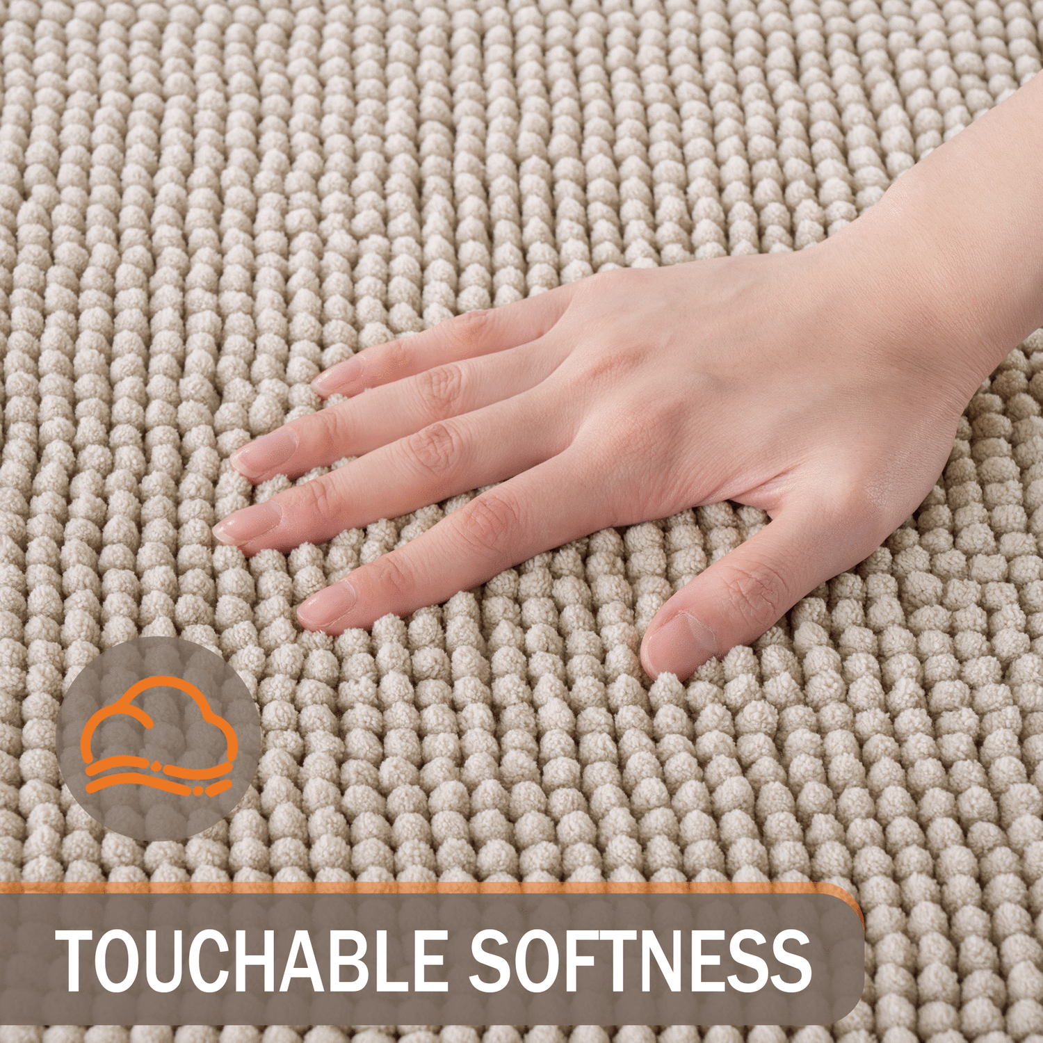 This plush chenille floor mat is designed with a dense, textured pile that actively draws moisture away from the surface. The unique nubby construction enables rapid liquid absorption, helping to keep floors dry and safe. Combined with quick-drying properties, the mat maintains a fresh feel between uses. Crafted for underfoot comfort, the soft surface provides a gentle cushion in high-moisture areas. Available in multiple sizes and colors, the mat easily coordinates with existing decor for a unified look. Its functional design supports a cleaner, more organized living space.